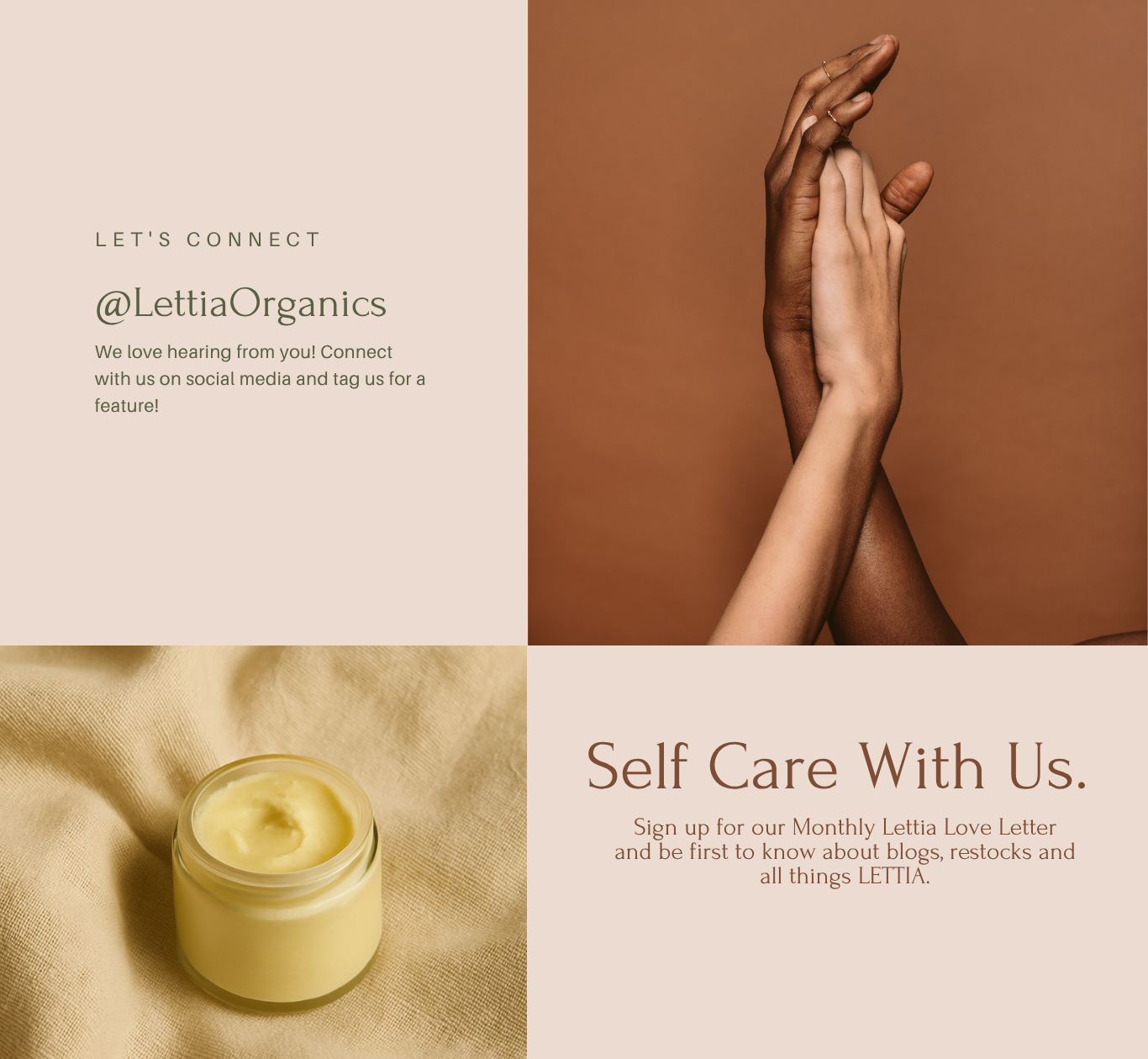Your favorite organic beauty since 2018. ❤︎ Your favorite organic beauty since 2018. ❤︎ Your favorite organic beauty since 2018. ❤︎ our story Shop For more information on wholesale inquiries, click here. Read our blog JOIN THE FAM. For all things lettia Email Address IM IN! We respect your privacy. Thank you!